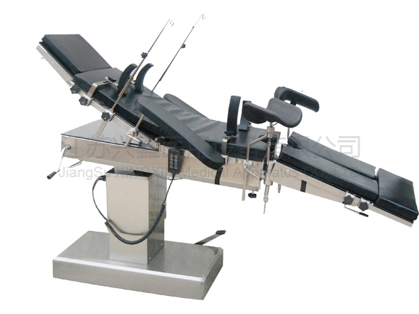 電動手術(shù)臺供醫(yī)院手術(shù)室施行人體各部位手術(shù)用,該產(chǎn)品除具有綜合手術(shù)臺的所有功能外,還有優(yōu)點(diǎn):腿板既可外展又可拆卸,調(diào)節(jié)方便,十分便利泌尿科手術(shù),臺面可作前后移動,且臺面板全部采用高強(qiáng)度透光板制成,可進(jìn)行X射線透視;臺面平移、前后傾、左右傾、上下升降均由電動推桿實(shí)現(xiàn),背板上折氣彈簧手動控制,操縱靈活,安全可靠。