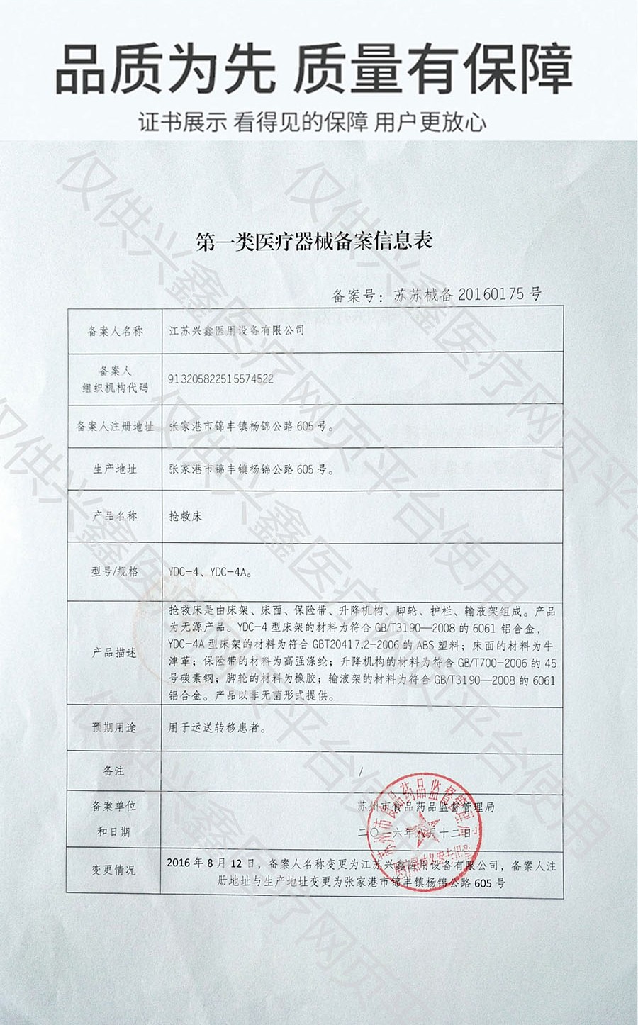 該擔(dān)架供醫(yī)院、急救中心轉(zhuǎn)移傷病員之用。帶透氣孔,承重性高,透氣性好,易清洗。